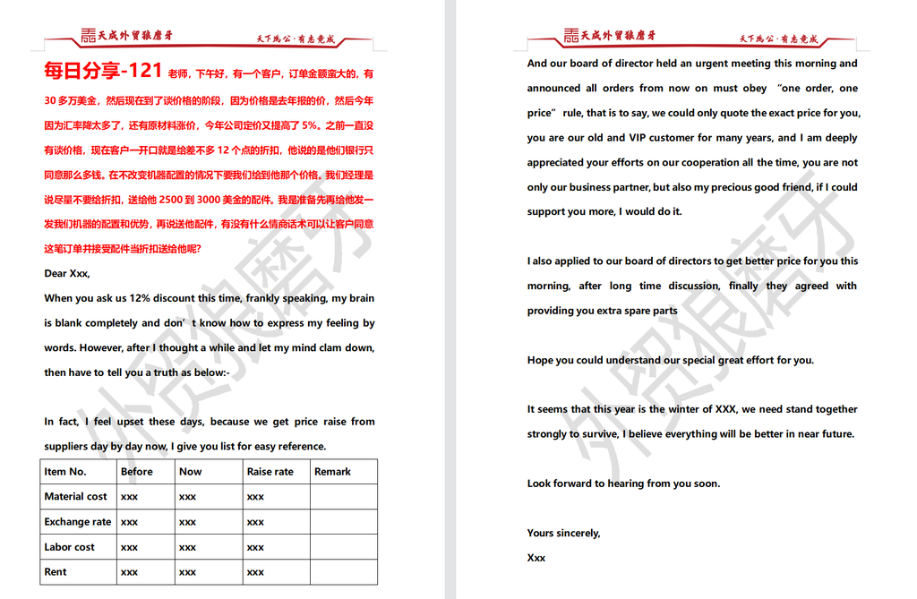 每日分享-121-1 老师,客户是我们的老客户 以往都很爽快,不谈价格,但是现在订单30万美金 需要我们给12个点的折扣,说银行只给他们批那么多金额,折扣太大,我们该如何说服客户呢?