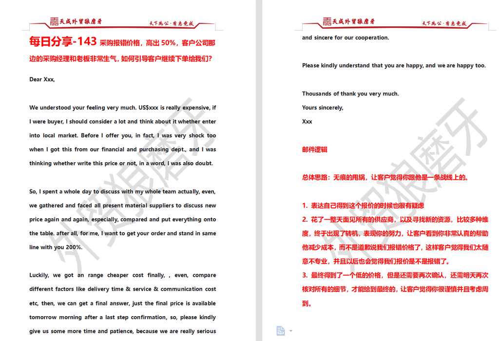 每日分享-143采购报错价格,高出50%,客户公司那边的采购经理和老板非常生气,如何引导客户继续下单给我们?